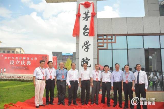 仪式上,陈鸣明、陈海峰、顾久、梅宏、刘希平、省教育厅厅长王凤友,茅台集团董事长袁仁国,茅台集团党委书记、总经理李保芳等为茅台学院揭牌。