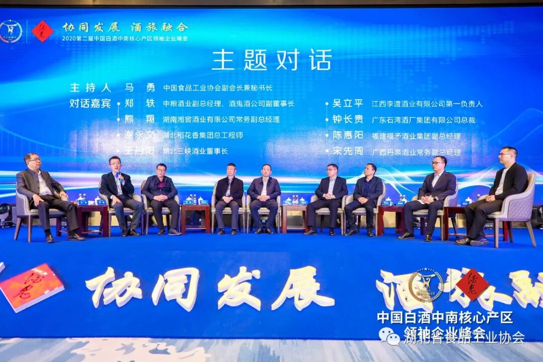 在“协同发展 酒旅融合”峰会主题对话环节中,中粮酒业副总经理、酒鬼酒公司副董事长郑轶代表酒鬼酒,与湘窖酒业常务副总经理熊翔、湖北稻花香集团总工程师谢永文、湖北三峡酒业董事长王丹阳、江西李渡酒业第一负责人吴立平、广东石湾酒厂总裁钟长贵、福建福矛酒业副总经理陈惠阳和广西丹泉酒业党务副总经理宋先周等酒企负责人共同探讨,分享各自酒企在酒旅融合、品牌IP打造、科技创新等方面的宝贵经验,共同为中南白酒产区打造世界级白酒产业集群和全国性产业链示范区的共同愿景建言献策。